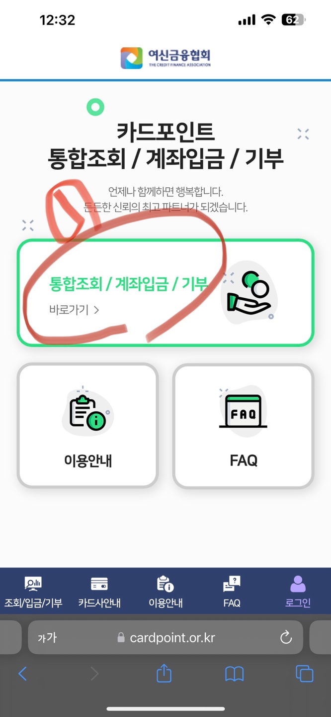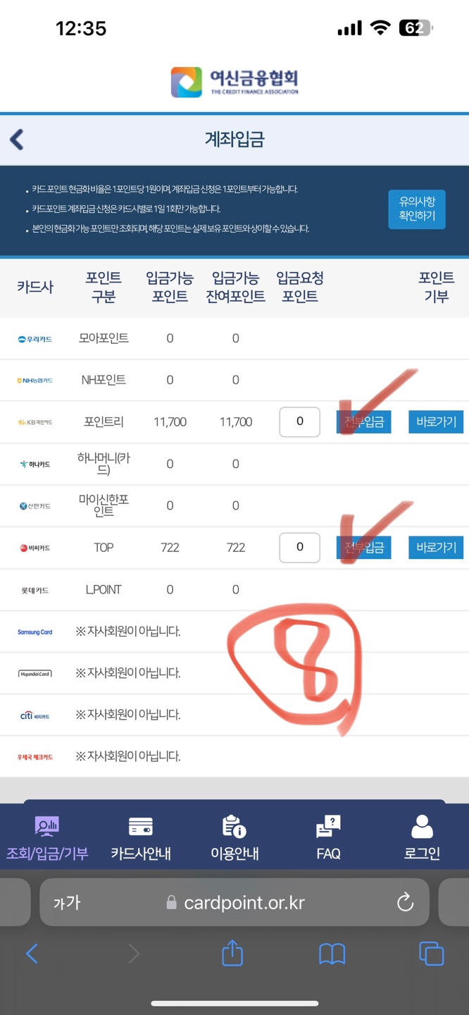 우선 아래의 사이트에서 카드포인트 통합조회를 하신 후 바로 입금을 받을 수 있습니다.