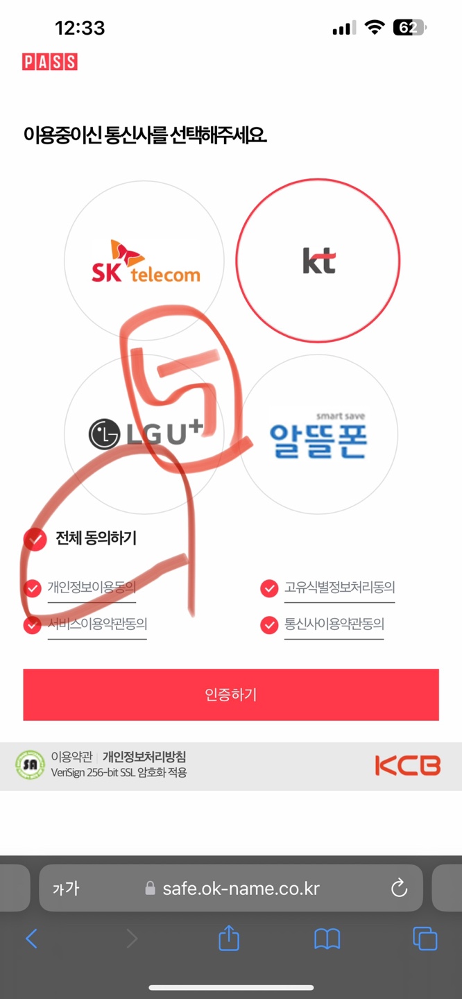 휴대폰 인증까지 완료하게 되면 위임동의 화면이 뜹니다. 개인정보 확인하시고 아래의 위임동의란을 클릭해줍니다.
